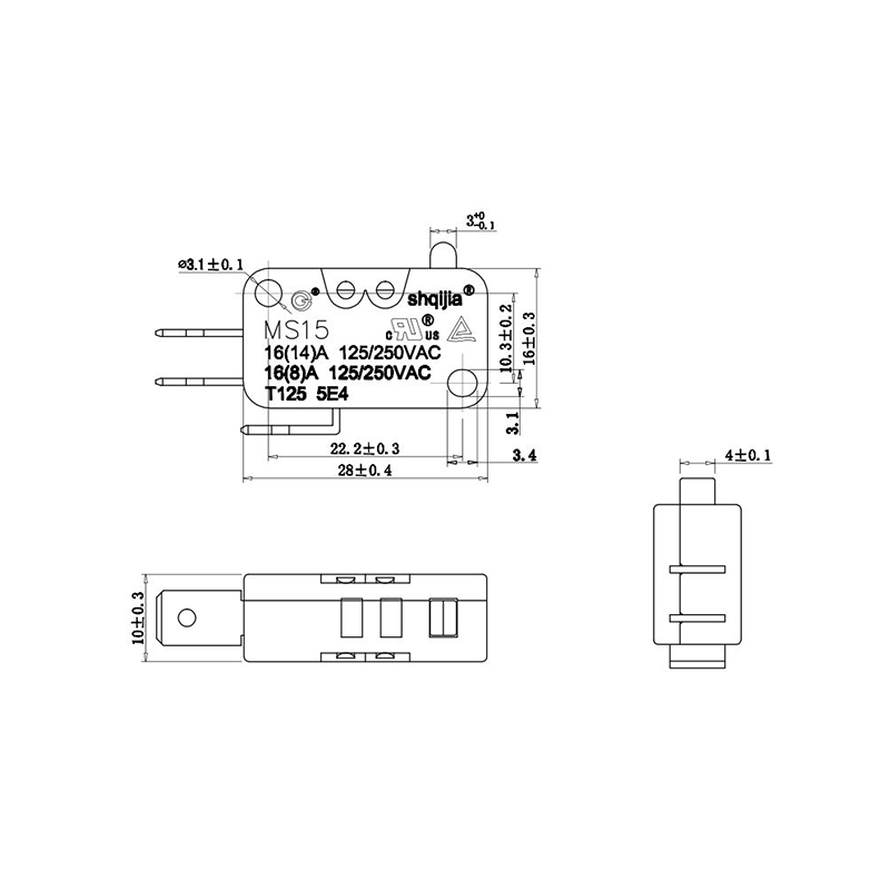 Shanghai Qijia Electronics Co., Ltd. Home / Products / Micro Switch / MS15-2 Micro Switch / MS15-2C2 Black Plastic Housing Micro Switch