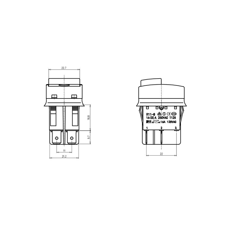 16(8)A 250VAC T125 1E4