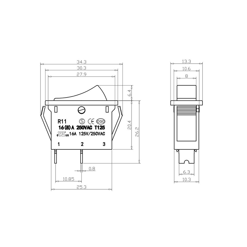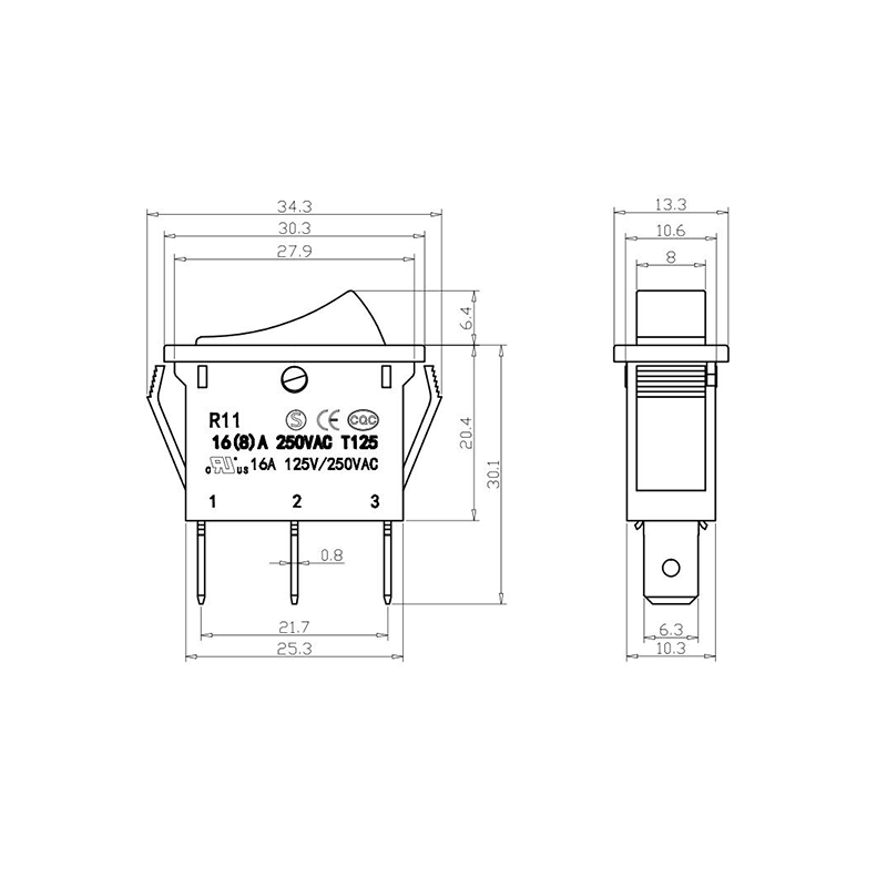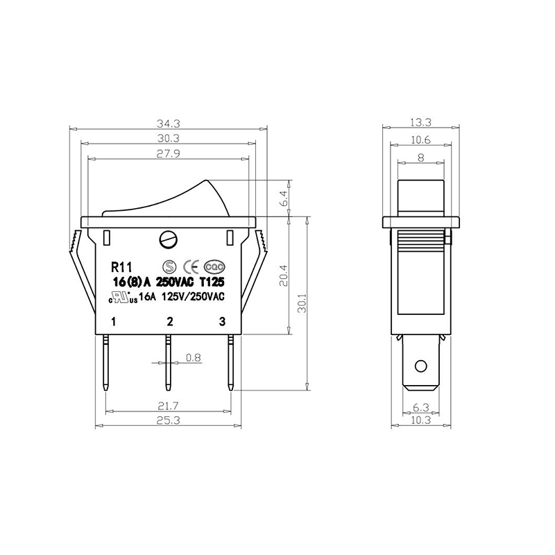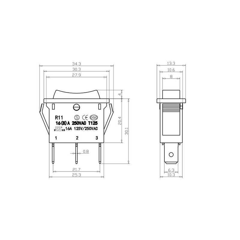 Shanghai Qijia Electronics Co., Ltd. Home / Products / Rocker Switch / R11 Rocker Switch / R11-11 Electrical Appliance Rocker Switch