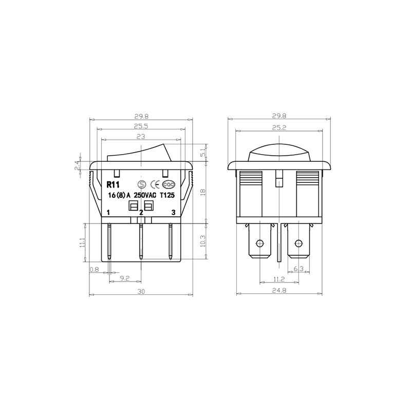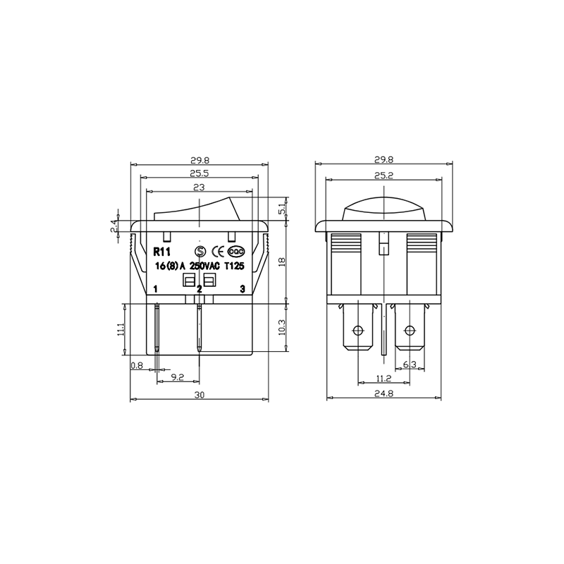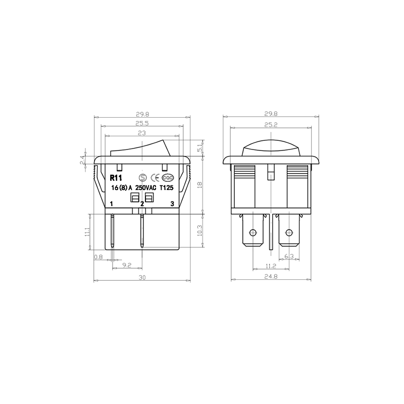 Shanghai Qijia Electronics Co., Ltd. Home / Products / Rocker Switch / R11 Rocker Switch / R11-32 Round Button Rocker Switch