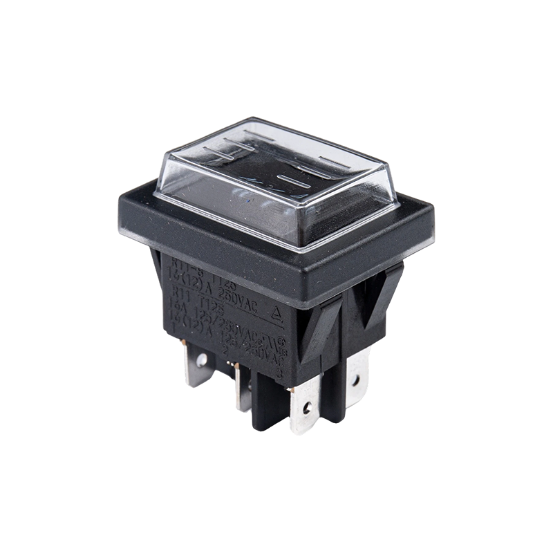 3. Product Description: The R11-8 series is a standard self-resetting rocker switch available in multiple configurations. Options include dustproof and waterproof designs with protective covers or internal dustproof structures. Its versatile applications span various power tools, garden equipment, and cleaning appliances such as table saws, bench grinders, electric lawn mowers, branch shredders, high-pressure washers, wet/dry vacuum cleaners, and is equally suitable for household appliances, instruments, and office equipment.