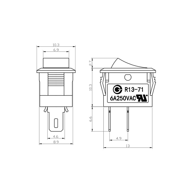 Certified by UL, S, CE, and CQC, the R13-71 switch meets stringent international standards for quality and electrical safety, making it a reliable choice for global markets.
