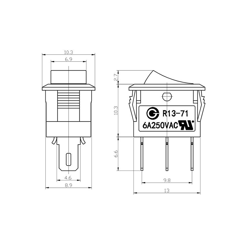The R13-71 Printer Rocker Switch is a compact, miniature rocker switch designed for broad application across printers, power devices, and small household appliances. It is available in two structural variants: one with an external protective cover for dust and water resistance, and the other with an internal dustproof design suited for standard environmental conditions where basic dust protection is needed.
